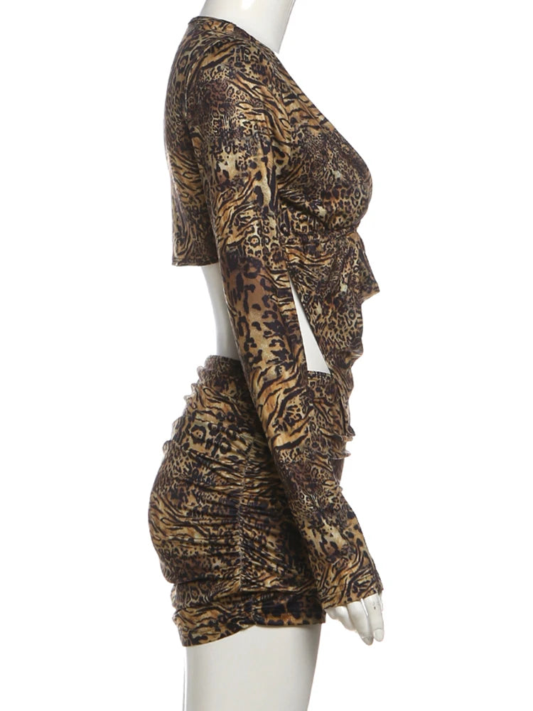 Two-Piece Leopard Print Crop Top + Mini Skirt